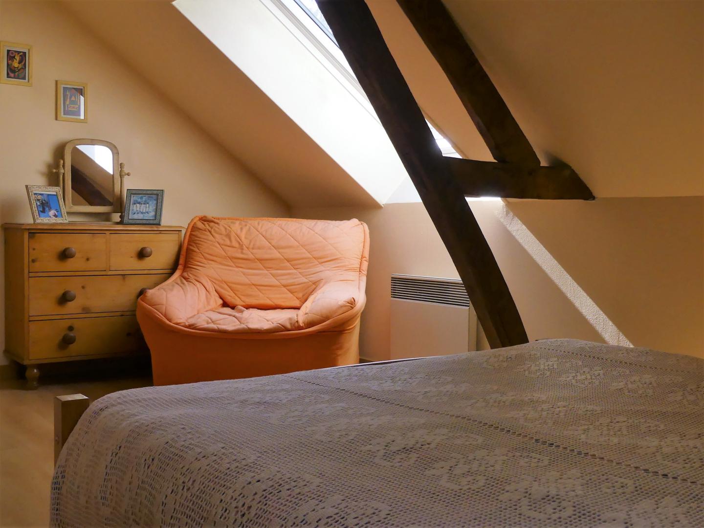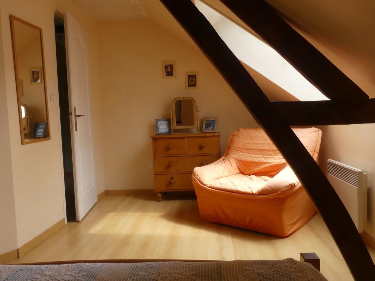 Cette charmante maison indépendante de 80 m², soigneusement rénovée, est située dans la même cour que les propriétaires. Profitez d'un jardin-terrasse privatif clos de 65 m², équipé d'un salon de jardin, d'un barbecue et de chaises longues pour des moments de détente en plein air. Une terrasse de 12 m² devant l'entrée du gîte ajoute une touche accueillante à cet espace extérieur. Rez de chaussée : Cuisine équipée (cuisinière avec 4 feux à induction, lave-vaisselle, micro-ondes, etc). Salon avec cheminée avec insert et TV écran 101 cm. A l'étage : palier avec coin lecture. 2 chambres dont une avec 1 lit 2 personnes en 140x190 et une autre avec 3 lits 1 personne en 90x190. Salle de bains. WC. Gîte TOUT INCLUS (charges énergétiques, draps, linge de toilette, ménage de fin de séjour compris dans le prix de location). Wifi. Tous commerces à 5 km.