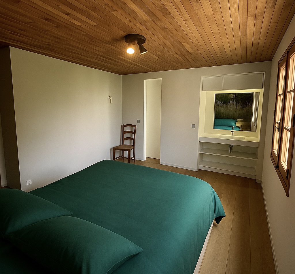 Ambiance élégante et soignée s'appuyant sur l'âme de cette maison de famille, avec une décoration où le bois est mis à l'honneur.