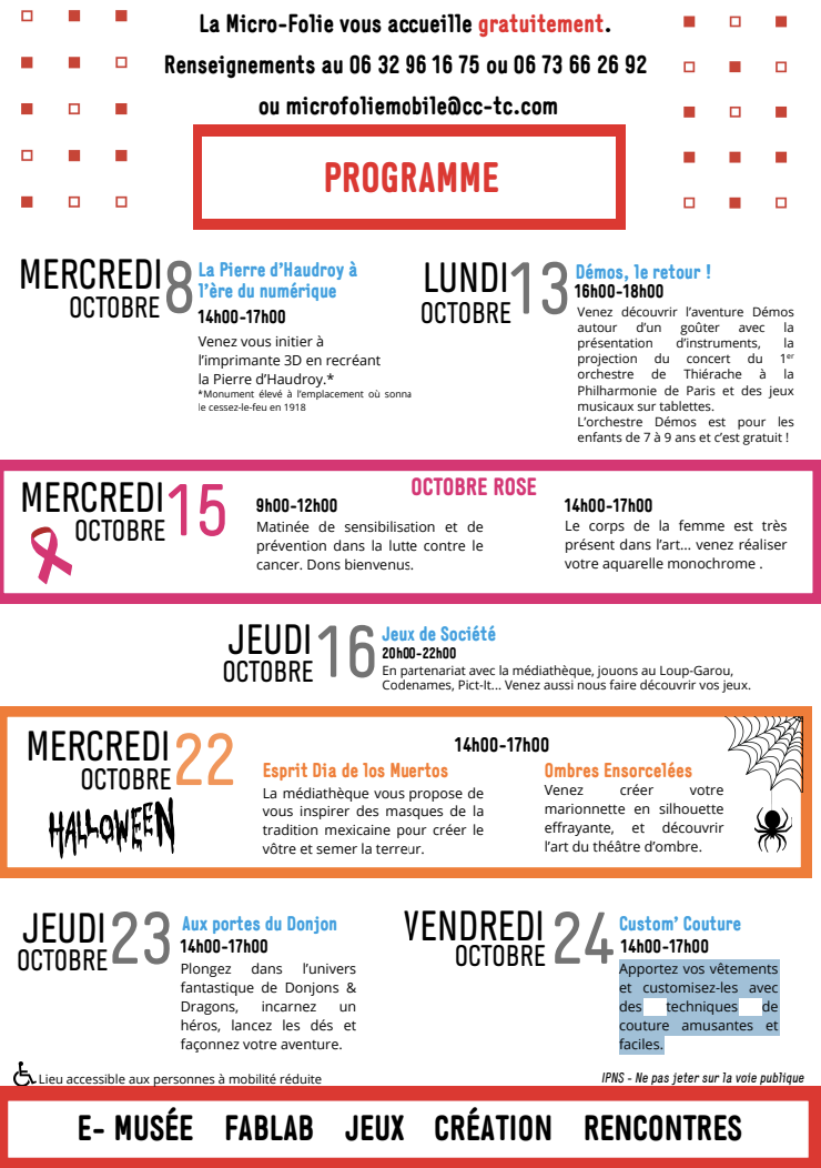 Venez découvrir l’aventure Démos autour d’un goûter avec la présentation d’instruments, la projection du concert de orchestre de Thiérache à la Philharmonie de Paris et des jeux musicaux sur tablettes.