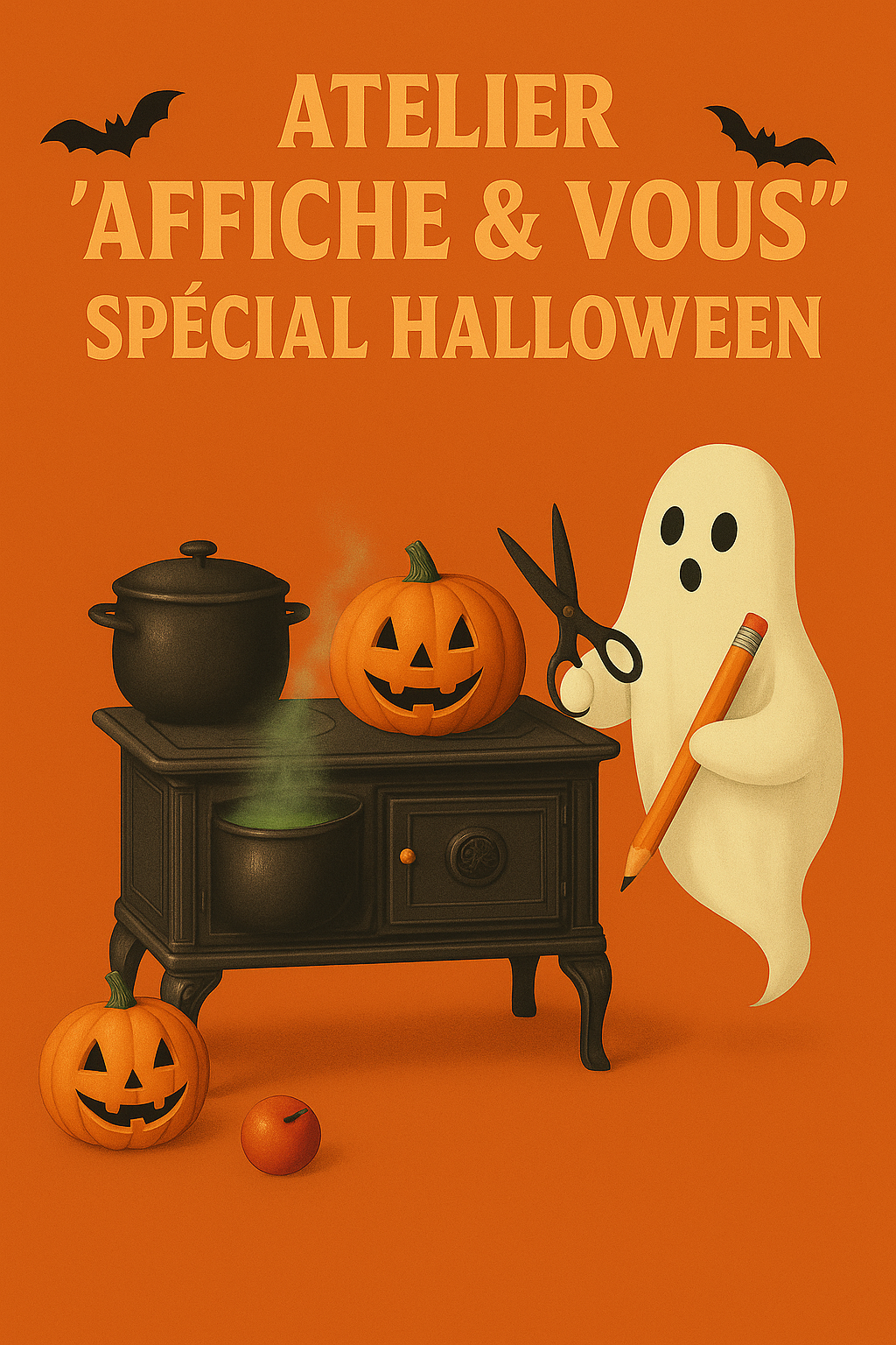 En vous inspirant des affiches de l'exposition et sur conseils de l'animateur de l'atelier, participez à cet atelier créatif spécial Halloween. Venez créer des affiches publicitaires pour les produits Godin avec un angle complétement décalé : cuisinières parfaites pour les rôtis d'enfant, appareil de chauffage aux flammes de l'enfer, etc.)