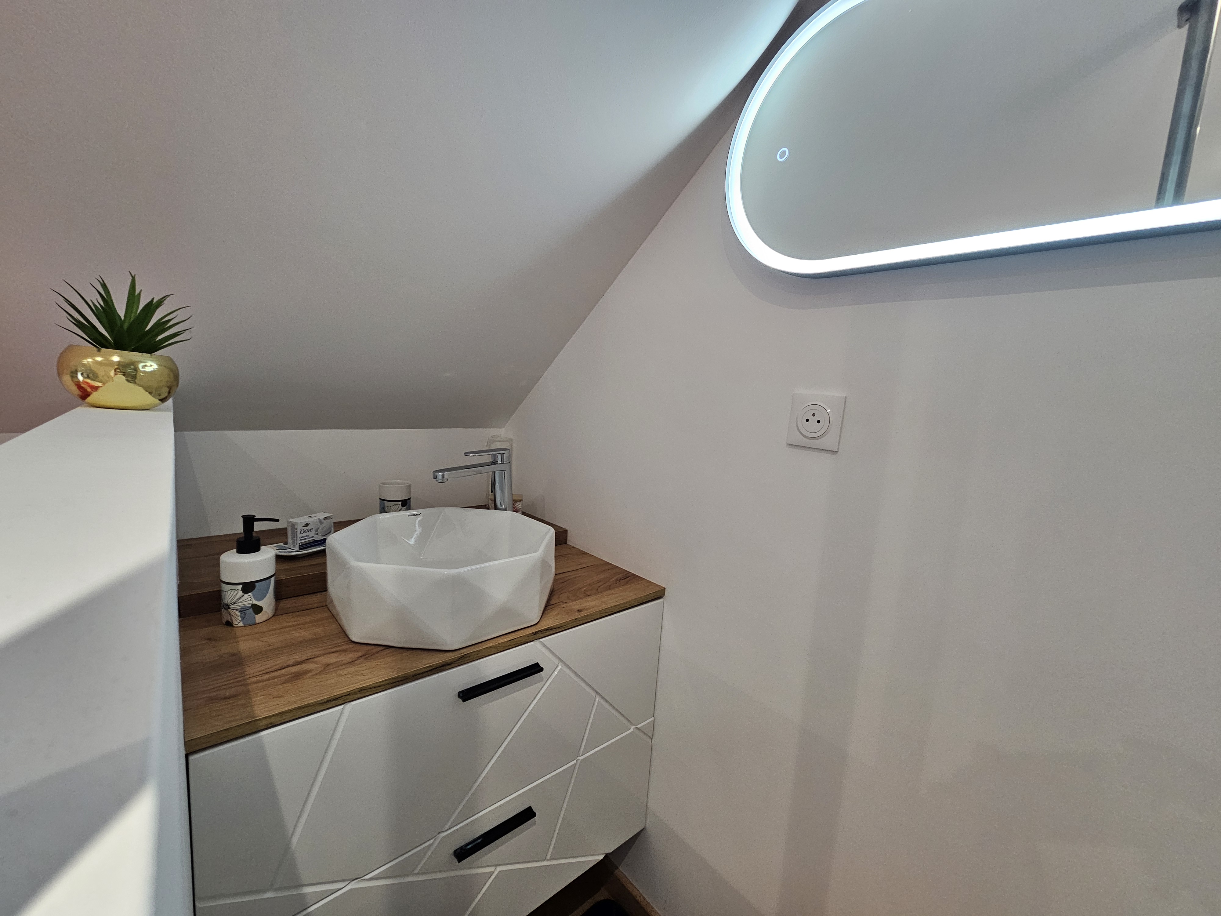 Un espace compact, pensé pour une pause à deux, où chaque détail a été choisi par Christelle pour que l’on s’y sente bien.