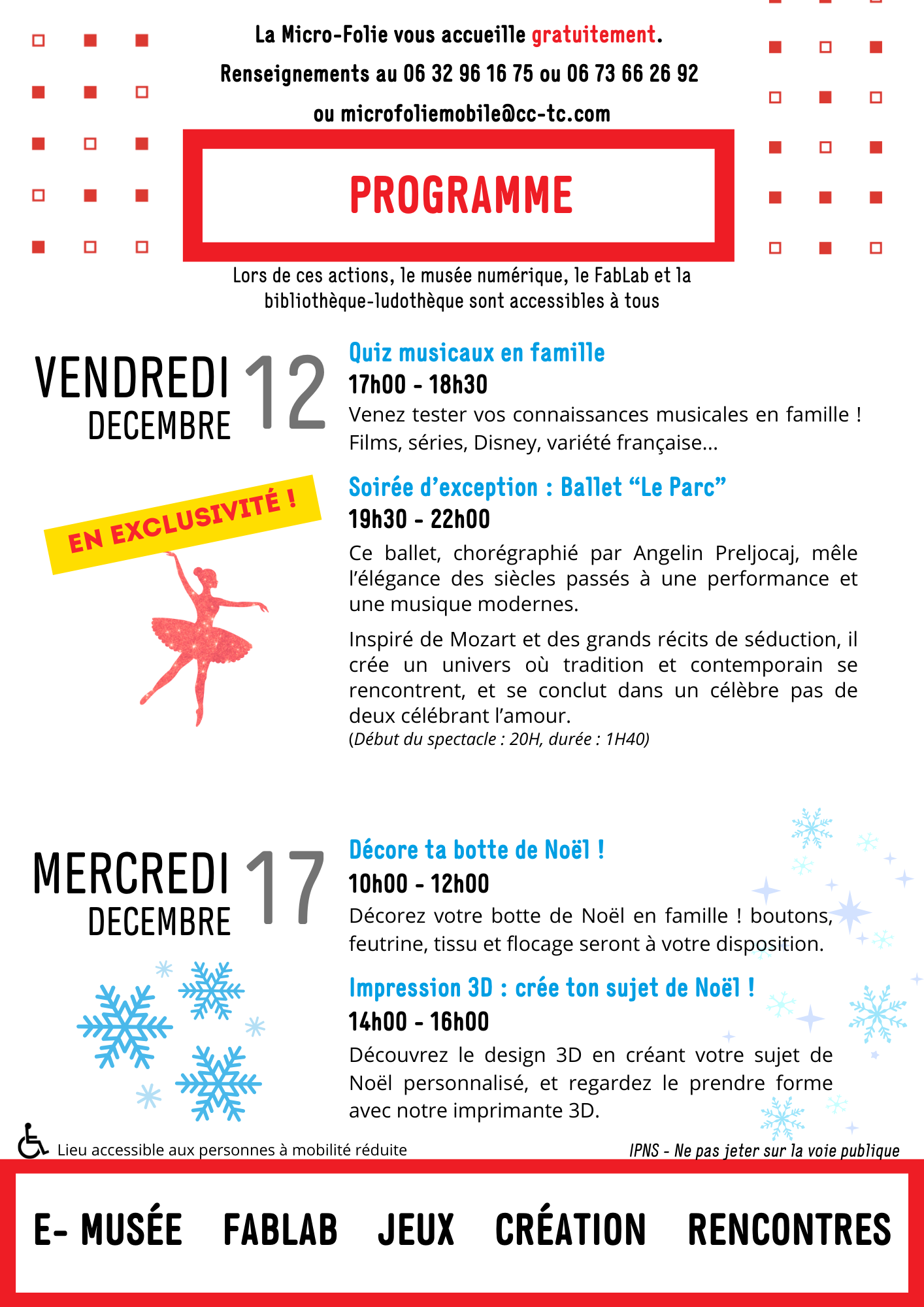 La Micro-Folie Mobile vous propose les ateliers suivants :