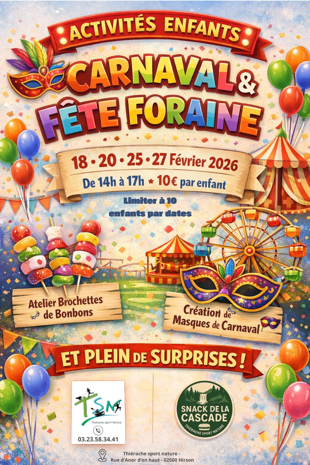 Au programme : atelier brochettes de bonbons, création de masques de carnaval et bien d’autres surprises !