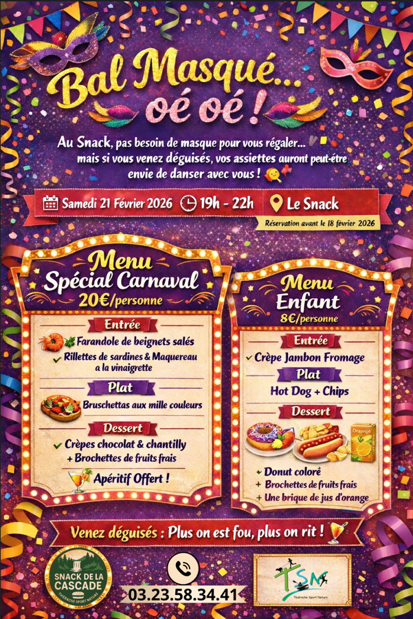 Venez partager un moment convivial au Snack de la Cascade à l’occasion de notre soirée carnaval !