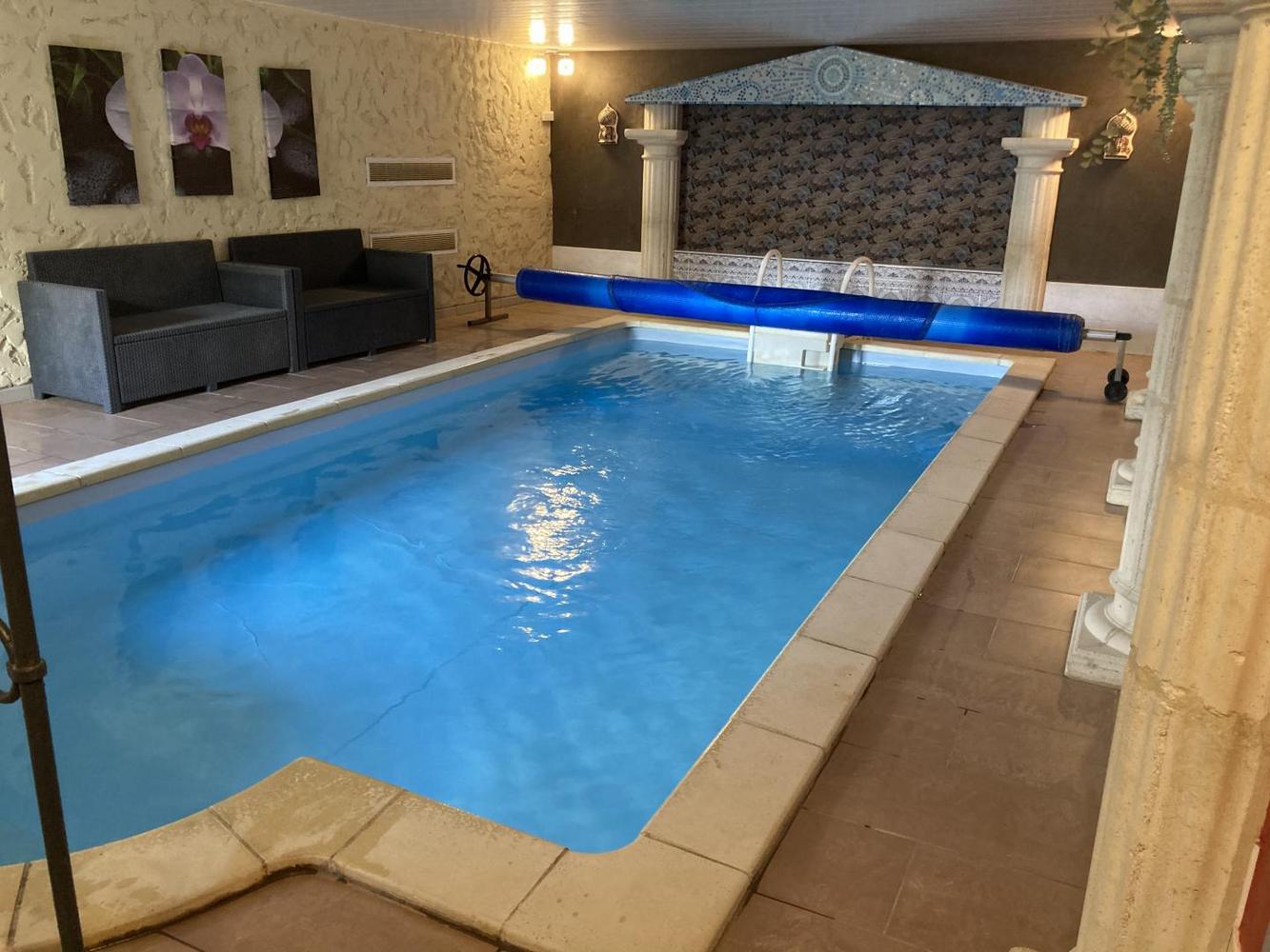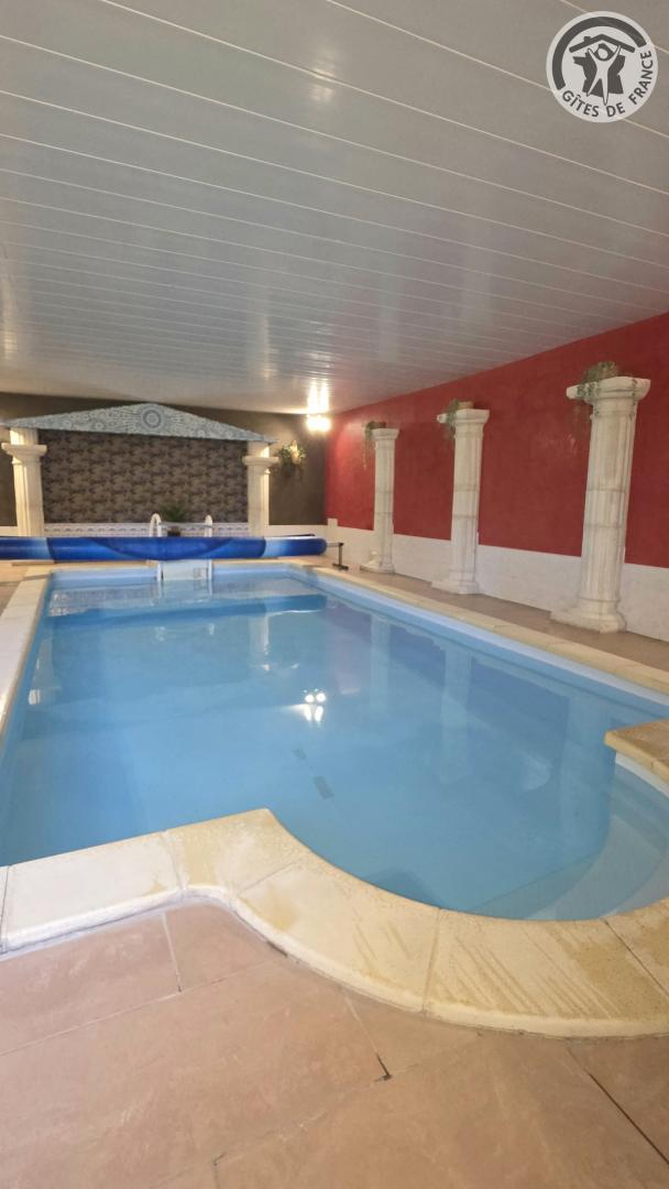 Ancien moulin rénové, au bord d'une petite rivière (accès par un portail sécurisé), au centre du village, mitoyen à la maison des propriétaires avec accès indépendant. Piscine intérieure privative 6x3 mètres et 1 mètre 10 de profondeur (accès par de larges marches), chauffée et accessible toute l'année en journée de 8h00 à 20h00. GITE NON FESTIF Rez-de-chaussée : cuisine, salle à manger/salon avec TV 106 cm et lecteur DVD, cheminée. 1 chambre avec 1 lit en 160X200cm. Salle de bains. WC indépendant. A l'étage : mezzanine avec billard. 2 chambres (une avec un lit en 140X190cm et une avec deux lits en 90X190cm). Salle d'eau avec douche en 80x80cm. WC indépendant. Le jardin de 800m2 se situe au niveau du parking privatif. Il est clôturé et donne accès par le pont au gîte et à sa terrasse privative de 40m² et à sa pelouse privative de 50 m². Chauffage central par pompe à chaleur. 1er panier de bois offert, payant pour les suivants. Wifi (fibre optique). Borne électrique à 2 km du gîte.