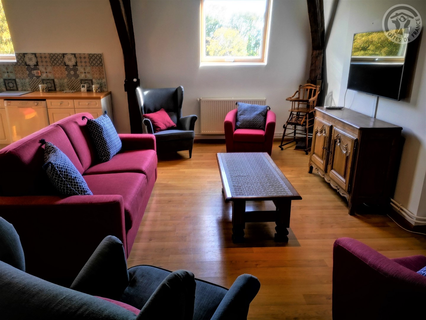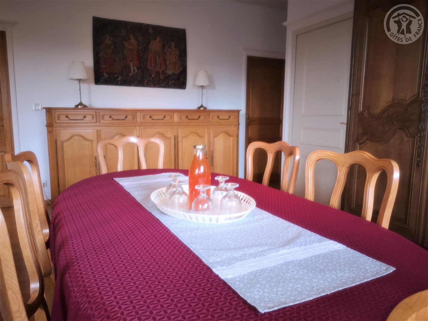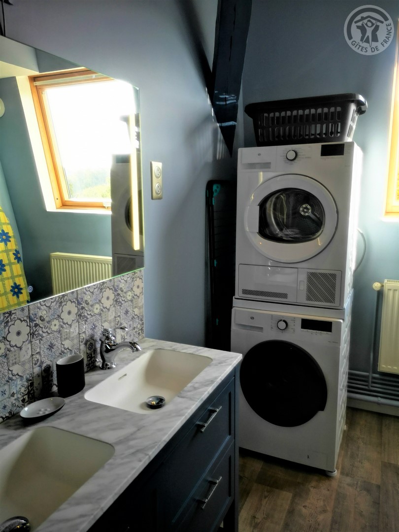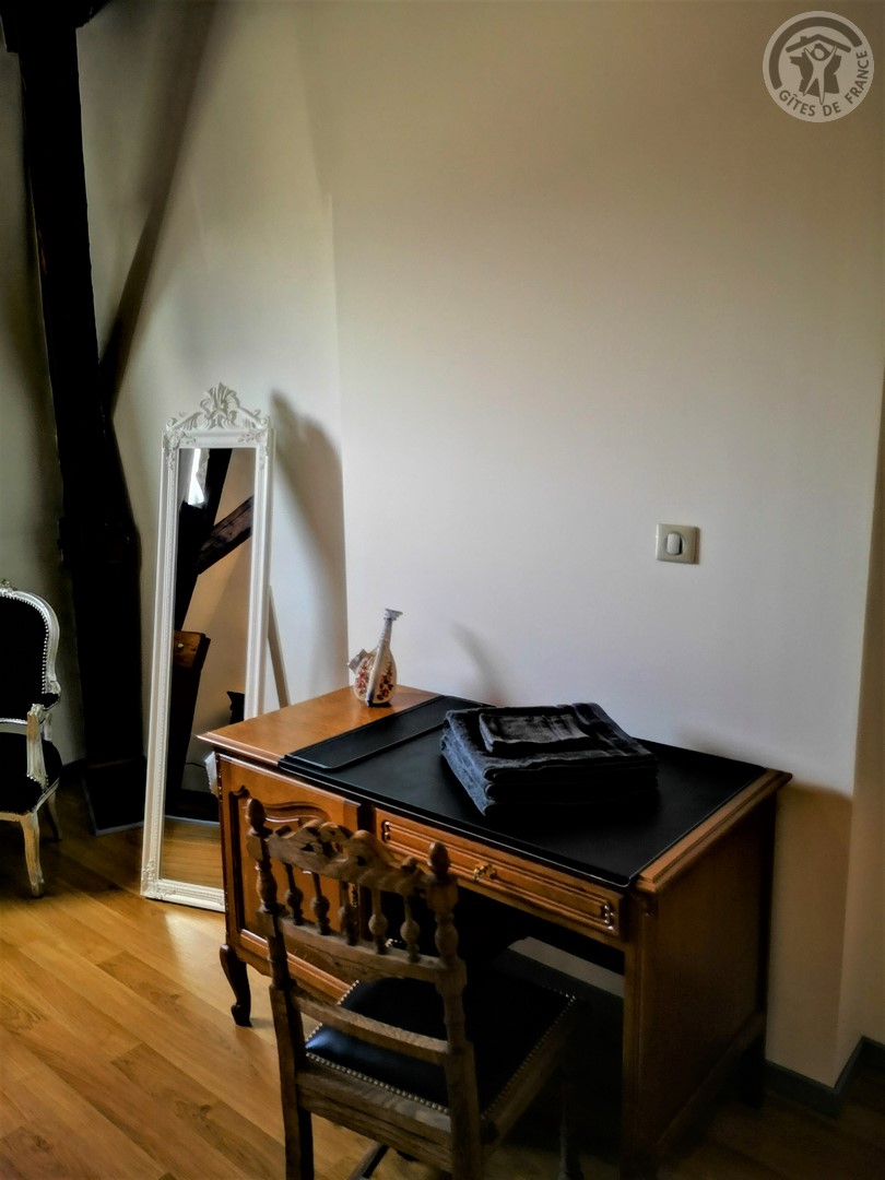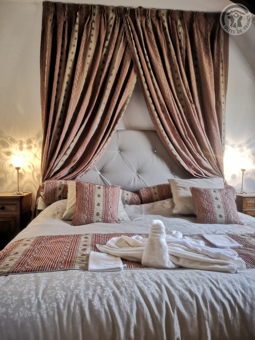 Gîte de 120 m² situé au 2ème étage (sans ascenseur) d'une grande demeure de caractère avec entrée indépendante. Parking privatif à l'intérieur de la propriété permettant d'accueillir jusqu'à 3 véhicules. Parc de 6000 m² avec jardin de 100 m² privatif au gîte. Grande pièce à vivre de 55 m² avec cuisine équipée (piano de cuisson avec 5 feux au gaz et four, grand réfrigérateur avec congélateur, micro-ondes, lave-vaisselle, etc.) ouverte sur la salle à manger/salon. TV écran plat de 123 cm. Chaîne Hifi connectée avec enceintes intégrées. Chambre de 19 m² avec 1 lit 2 personnes en 200x200. Chambre de 17 m² avec 2 lits 1 personne en 90x190. Chambre de 21 m² avec 1 lit 2 personnes en 200x200. Salle d'eau avec douche en 120x90, lave-linge et sèche-linge. WC indépendant. Gîte TOUT INCLUS (charges énergétiques, draps, linge de toilette, ménage de fin de séjour compris dans le prix de location). Wifi. Trampoline extérieur pour enfants à disposition.