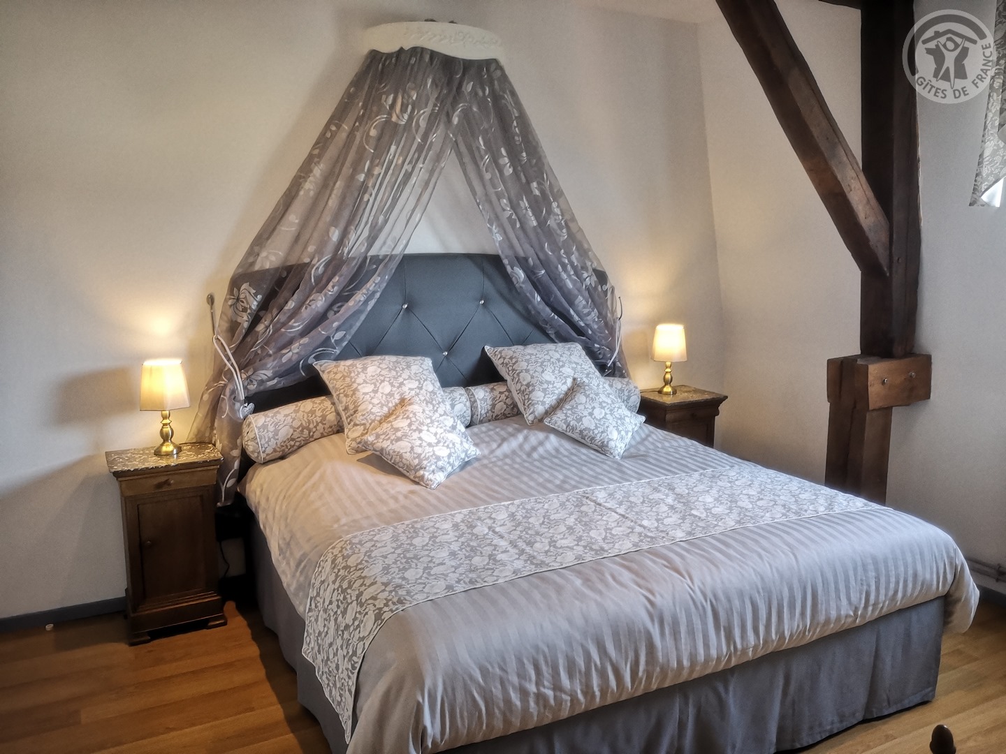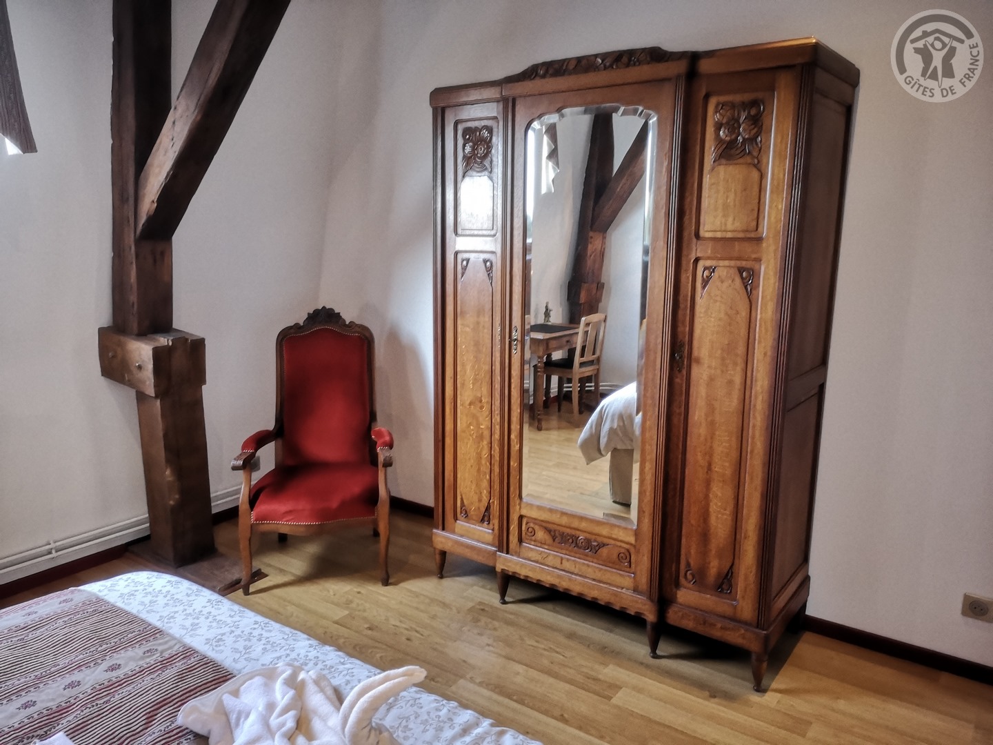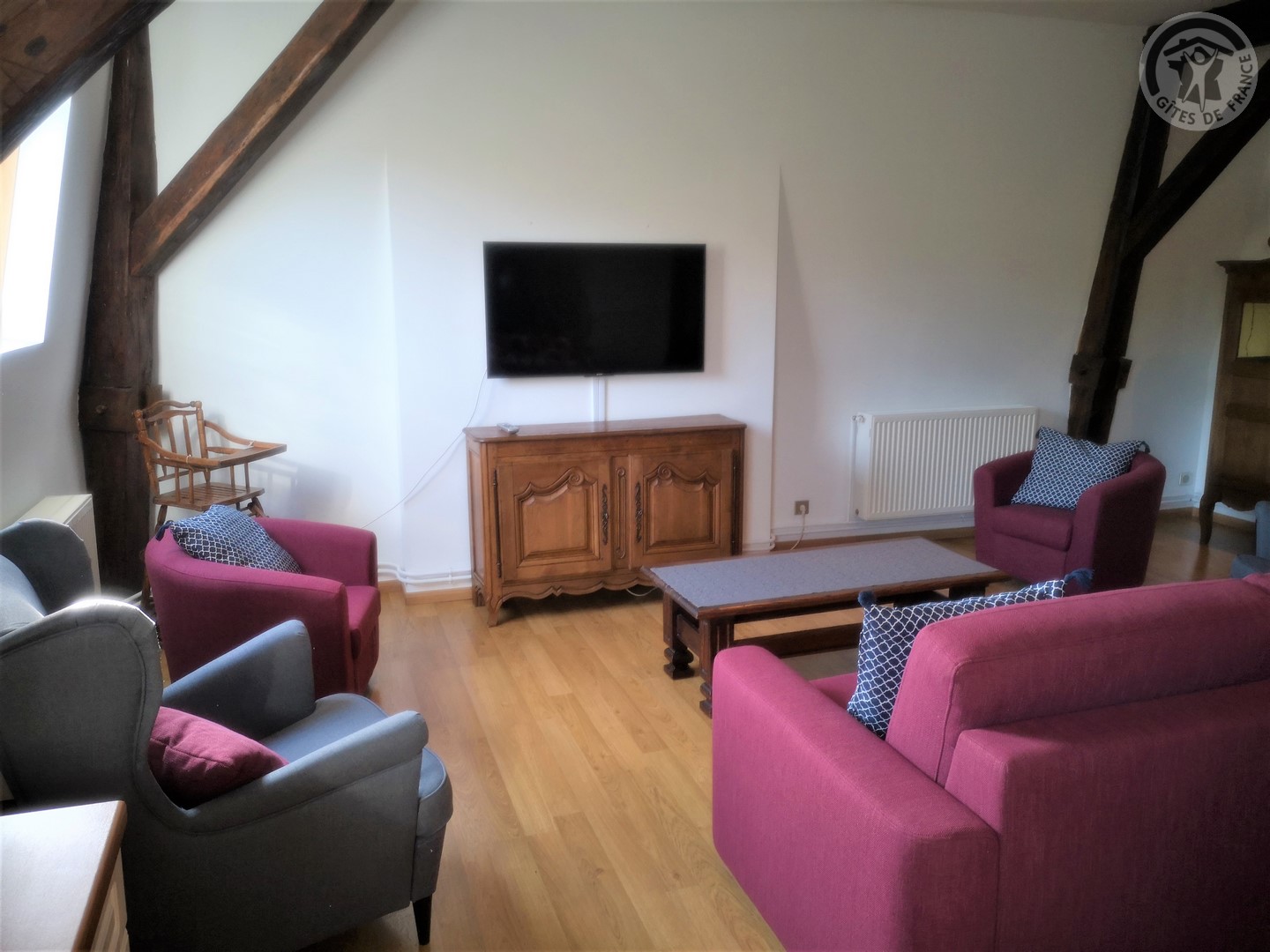 Gîte de 120 m² situé au 2ème étage (sans ascenseur) d'une grande demeure de caractère avec entrée indépendante. Parking privatif à l'intérieur de la propriété permettant d'accueillir jusqu'à 3 véhicules. Parc de 6000 m² avec jardin de 100 m² privatif au gîte. Grande pièce à vivre de 55 m² avec cuisine équipée (piano de cuisson avec 5 feux au gaz et four, grand réfrigérateur avec congélateur, micro-ondes, lave-vaisselle, etc.) ouverte sur la salle à manger/salon. TV écran plat de 123 cm. Chaîne Hifi connectée avec enceintes intégrées. Chambre de 19 m² avec 1 lit 2 personnes en 200x200. Chambre de 17 m² avec 2 lits 1 personne en 90x190. Chambre de 21 m² avec 1 lit 2 personnes en 200x200. Salle d'eau avec douche en 120x90, lave-linge et sèche-linge. WC indépendant. Gîte TOUT INCLUS (charges énergétiques, draps, linge de toilette, ménage de fin de séjour compris dans le prix de location). Wifi. Trampoline extérieur pour enfants à disposition.