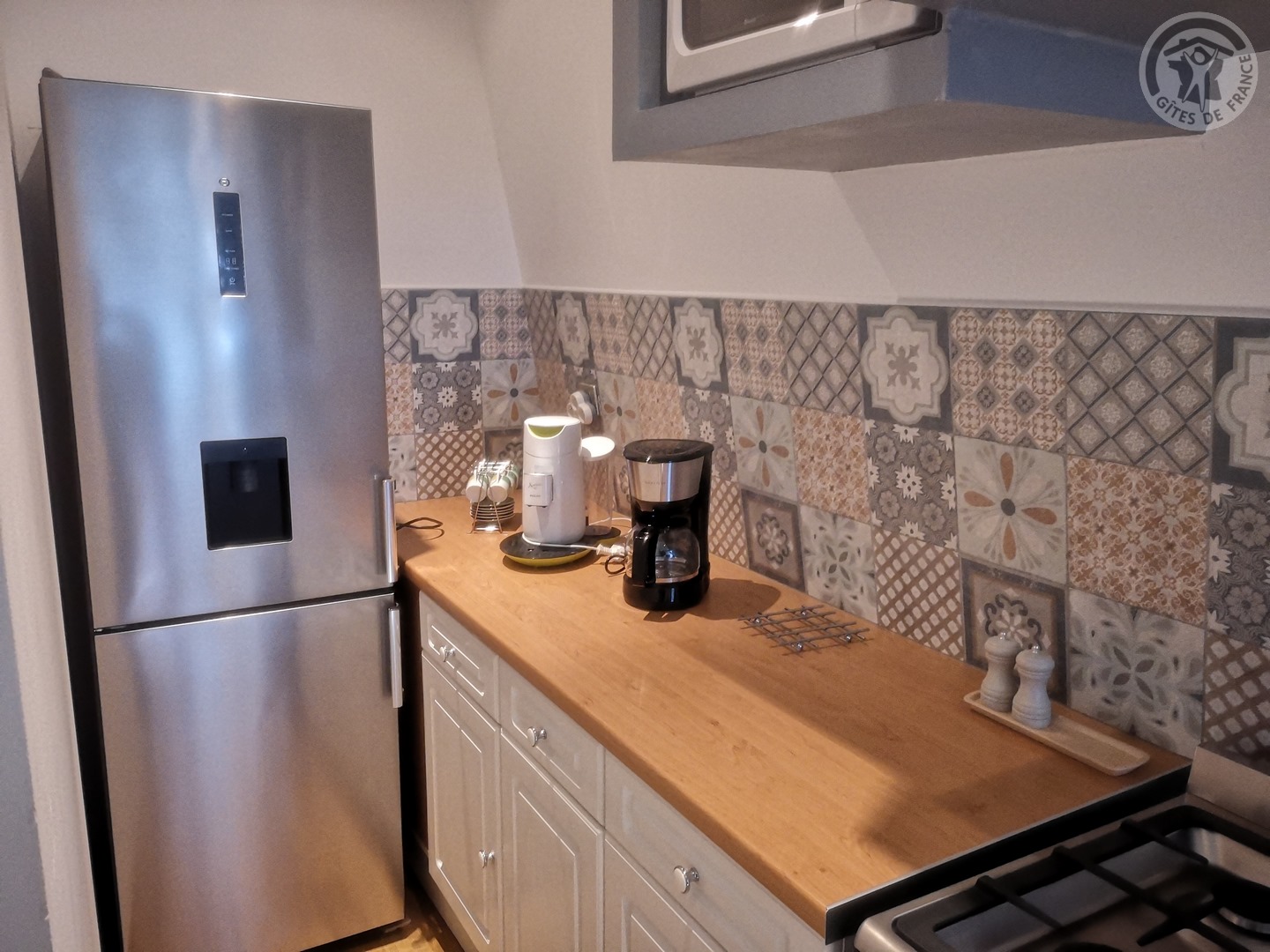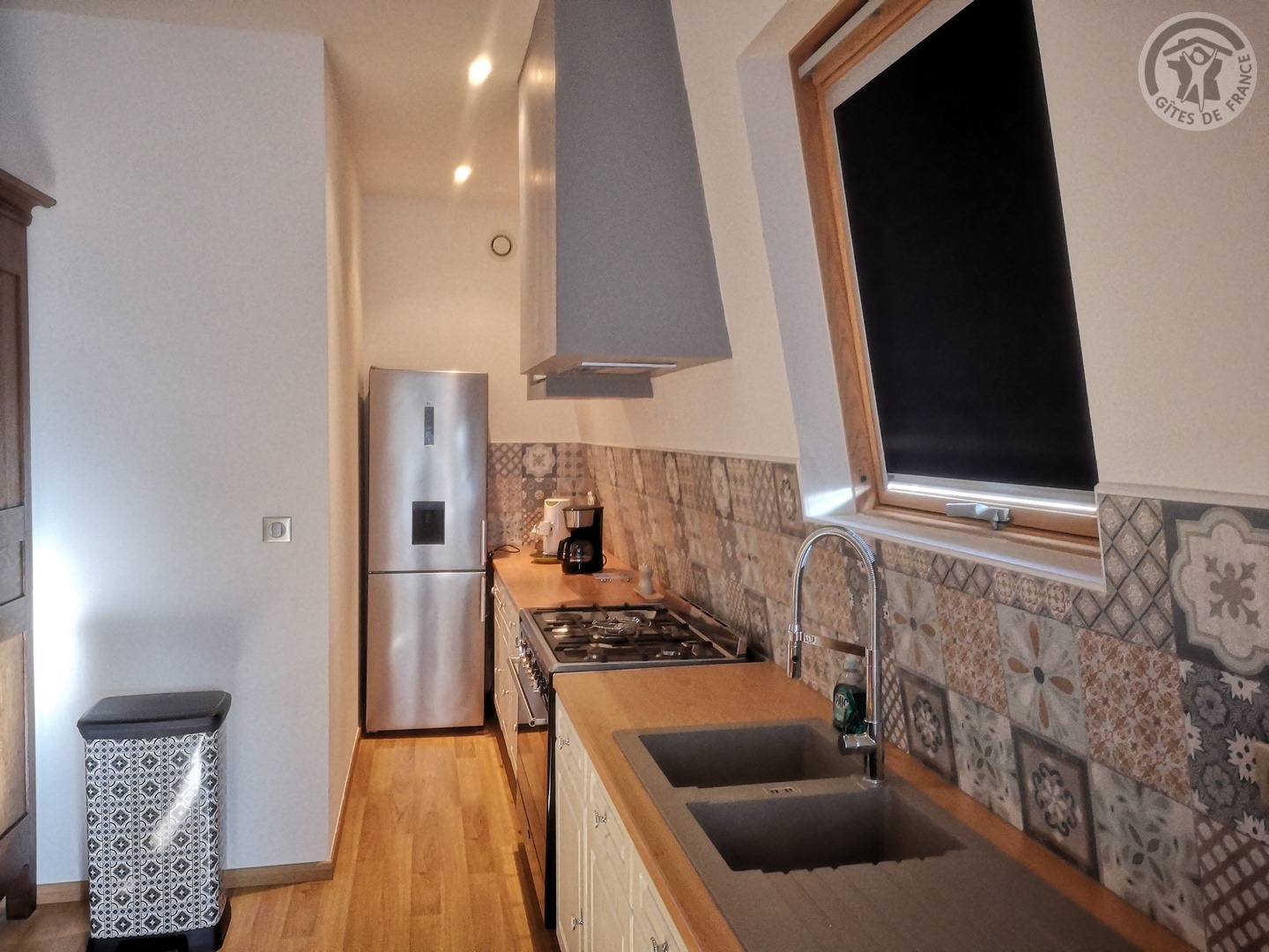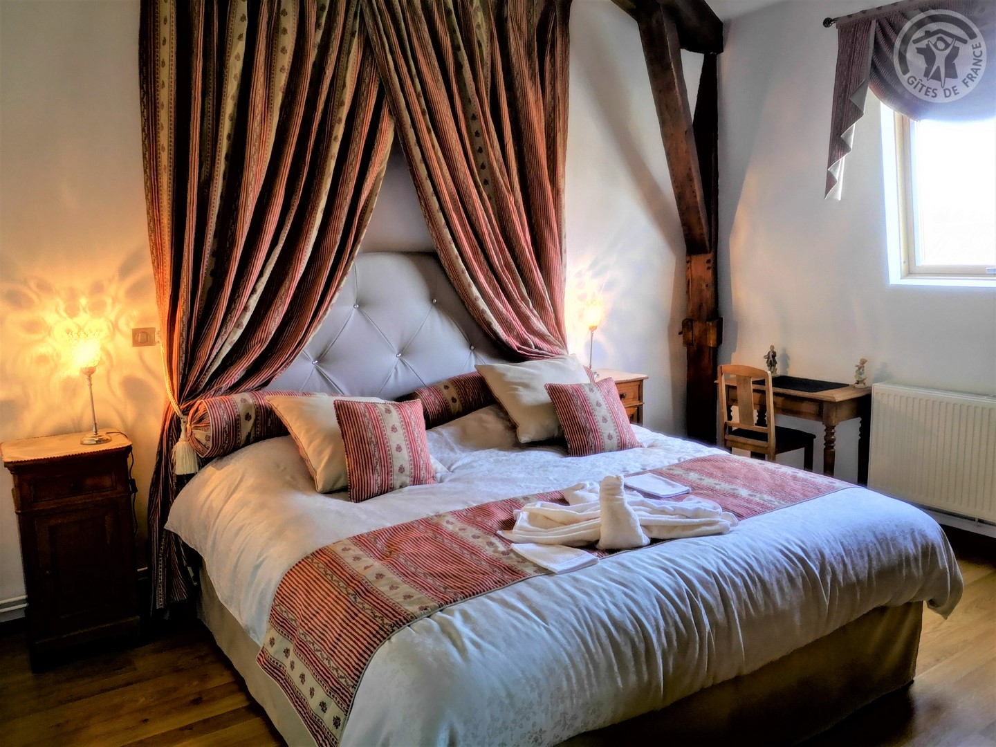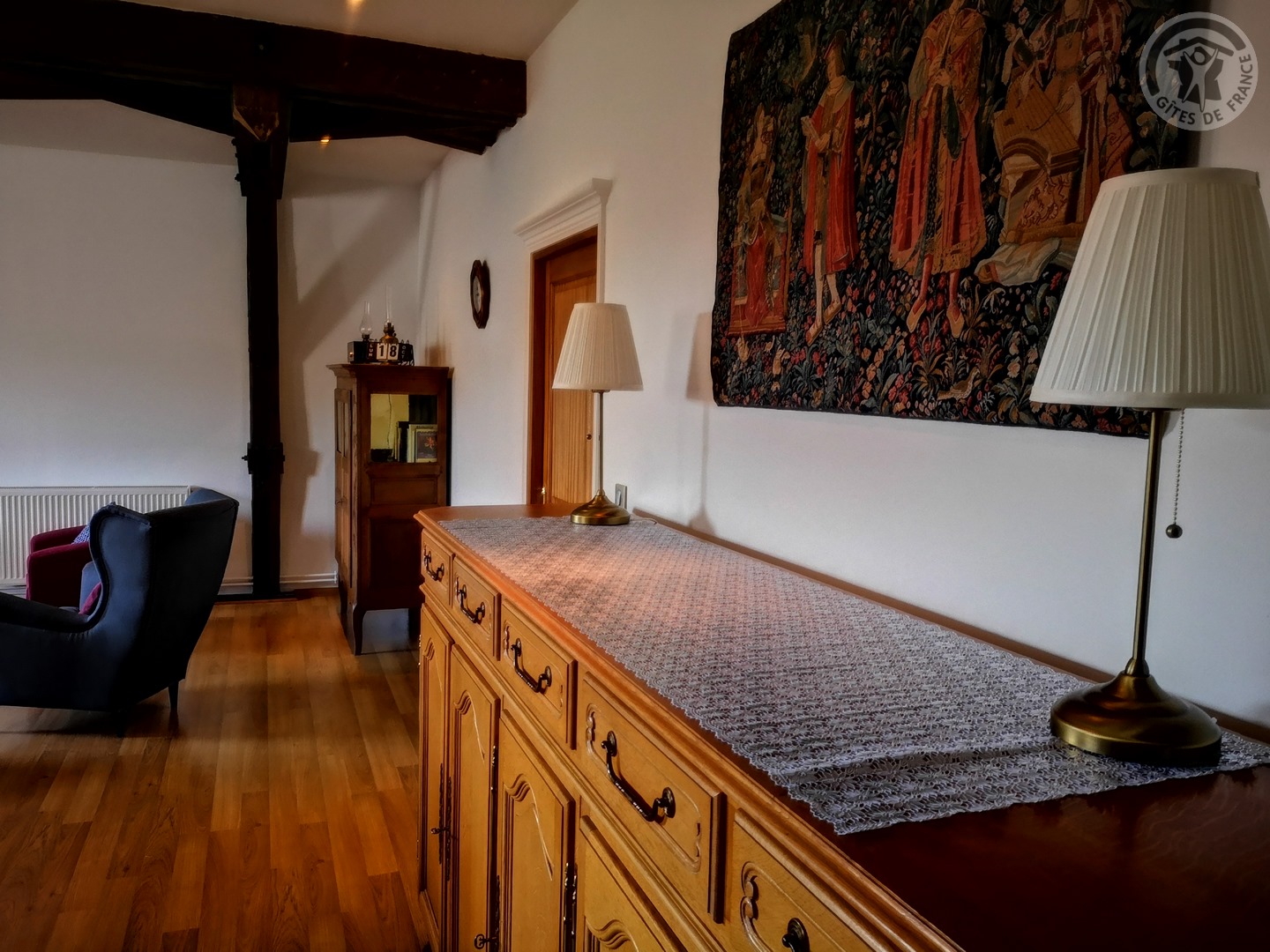 Gîte de 120 m² situé au 2ème étage (sans ascenseur) d'une grande demeure de caractère avec entrée indépendante. Parking privatif à l'intérieur de la propriété permettant d'accueillir jusqu'à 3 véhicules. Parc de 6000 m² avec jardin de 100 m² privatif au gîte. Grande pièce à vivre de 55 m² avec cuisine équipée (piano de cuisson avec 5 feux au gaz et four, grand réfrigérateur avec congélateur, micro-ondes, lave-vaisselle, etc.) ouverte sur la salle à manger/salon. TV écran plat de 123 cm. Chaîne Hifi connectée avec enceintes intégrées. Chambre de 19 m² avec 1 lit 2 personnes en 200x200. Chambre de 17 m² avec 2 lits 1 personne en 90x190. Chambre de 21 m² avec 1 lit 2 personnes en 200x200. Salle d'eau avec douche en 120x90, lave-linge et sèche-linge. WC indépendant. Gîte TOUT INCLUS (charges énergétiques, draps, linge de toilette, ménage de fin de séjour compris dans le prix de location). Wifi. Trampoline extérieur pour enfants à disposition.