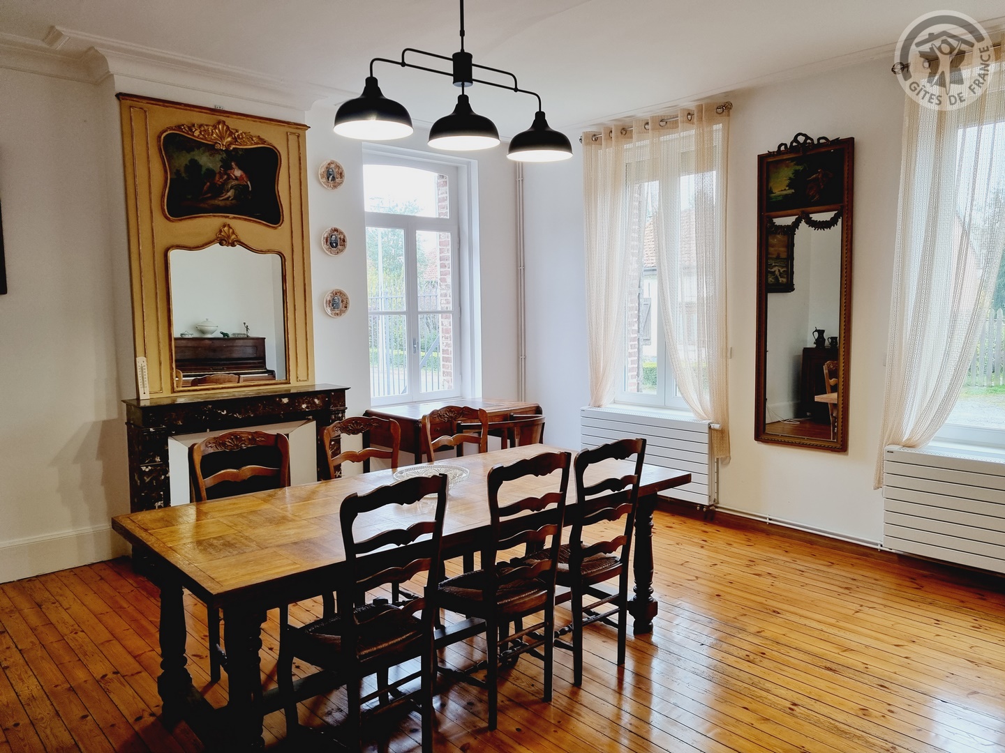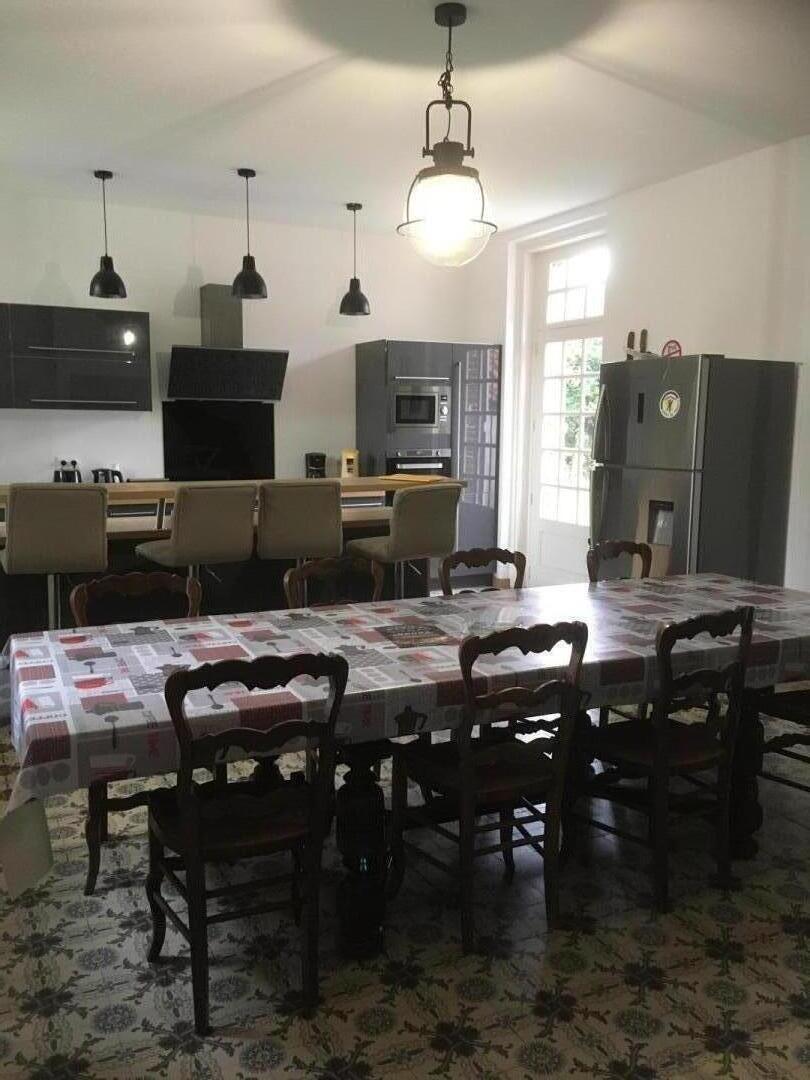 Maison bourgeoise de 200 m² indépendante au cœur du village de Grougis. Rez-de-chaussée : salon avec cheminée décorative et TV 140cm, salle à manger avec TV 109cm. Véranda avec accès direct au jardin, salle d'eau (douche italienne 140x95cm, vasque). WC indépendant. Cuisine équipée (lave-vaisselle, 4 plaques induction, micro-ondes, four, réfrigérateur-congélateur, cafetière à dosettes), bar avec 4 assises et espace repas, TV 109cm. Salle détente avec fauteuil et canapé. Salle avec vélo elliptique et table de ping-pong. A l'étage, une chambre avec un lit double 160x200cm. 2 chambres avec 2 lits 90x190cm, une chambre avec 2 lits électriques 80x200cm. Un WC indépendant. Une salle de bains avec douche cabine en angle et baignoire. Lit bébé sur demande. Terrasse de 50 m² avec salon de jardin et barbecue. Jardin clos de 2 000 m² sans vis-à-vis . Possibilité de stationnement dans la propriété pour 2 ou 3 véhicules. Charges non comprises. Chauffage au fuel (facturé selon consommation)