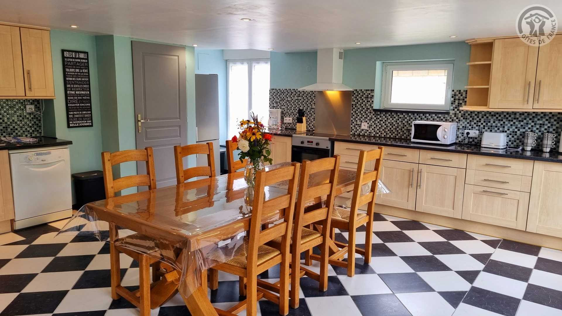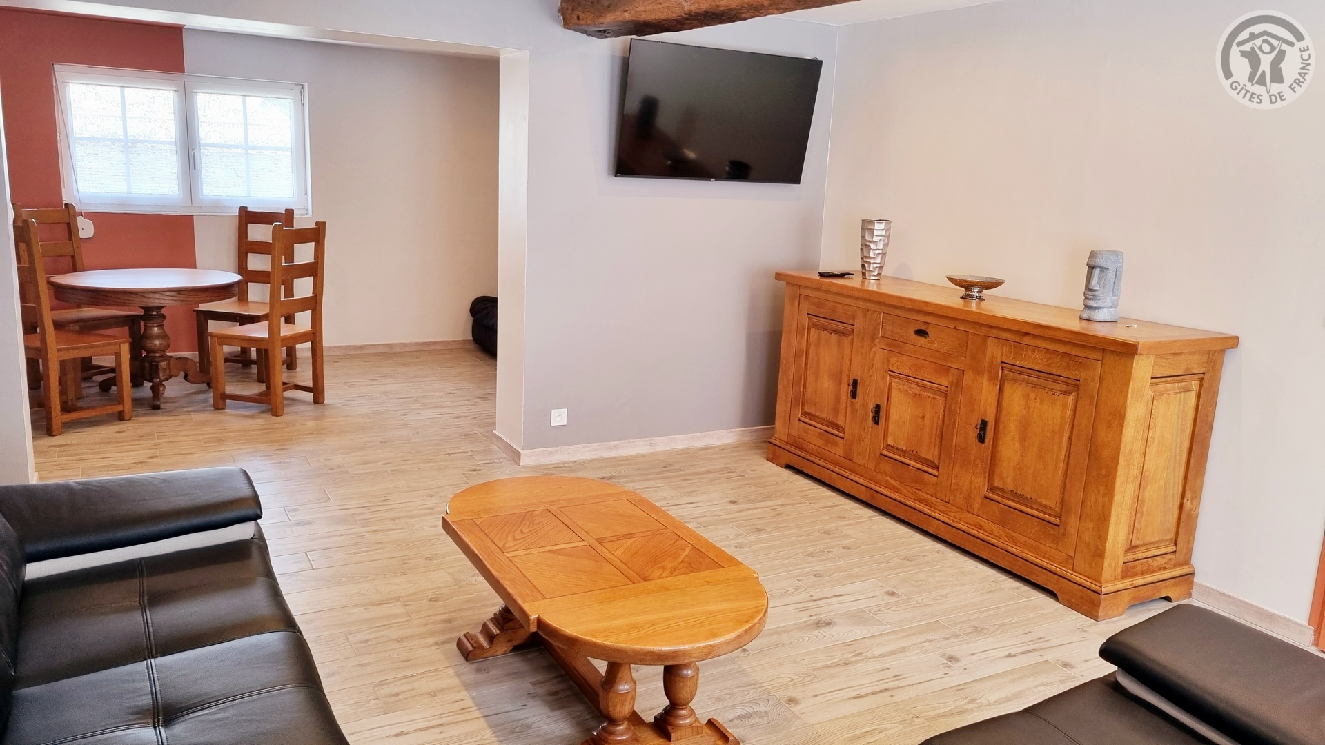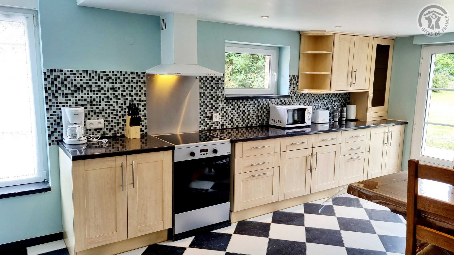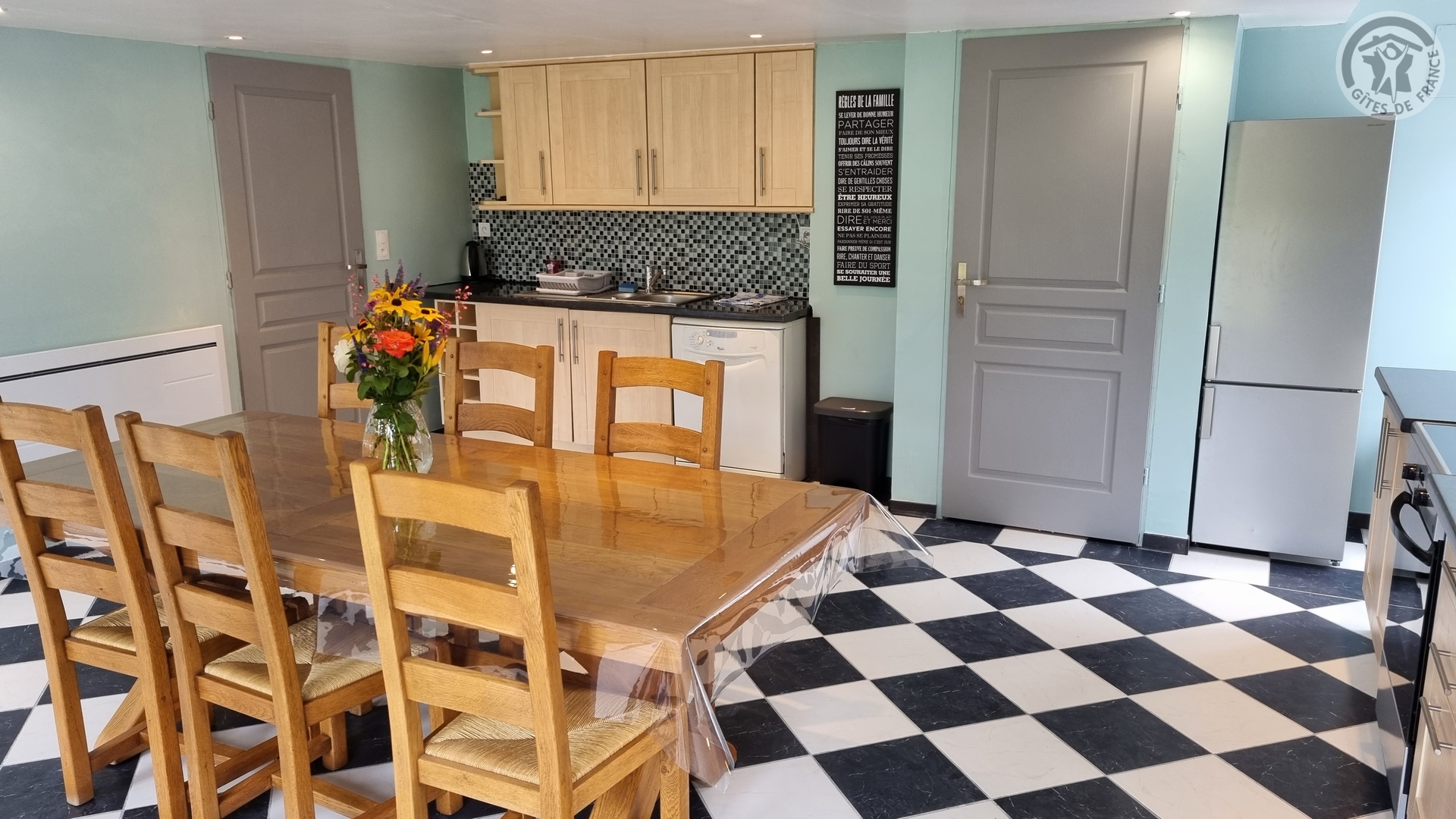 Proche de la frontière belge mais aussi du parc naturel de l'Avesnois, plain-pied indépendant 123 m² au centre du village. Terrasse de 30 m² avec salon de jardin et barbecue. Jardin clos de 700 m². Parking privatif pour 3 véhicules, sécurisé par un portail. Hall d'entrée, salon avec grand canapé d'angle et TV connectée écran plat 125 cm, petit salon avec canapé convertible en lit de 160x200. Cuisine équipée (cuisinière avec 4 feux à induction, grand réfrigérateur avec congélateur, micro-ondes, lave-vaisselle...). Salle d'eau avec douche italienne. WC indépendant avec lave-linge et sèche-linge. 2 chambres dont une avec un lit double en 160x200 et une avec 2 lits simples en 90x190. Euro Vélo 3 à 600 mètres du gîte. Possibilité de location de vélos auprès de Kanoë Évasion à 550 mètres du gîte. Wifi. Équipement bébé à disposition. Gîte en tout inclus (charges énergétiques, draps, linge de toilette et ménage de fin de séjour compris dans le prix).