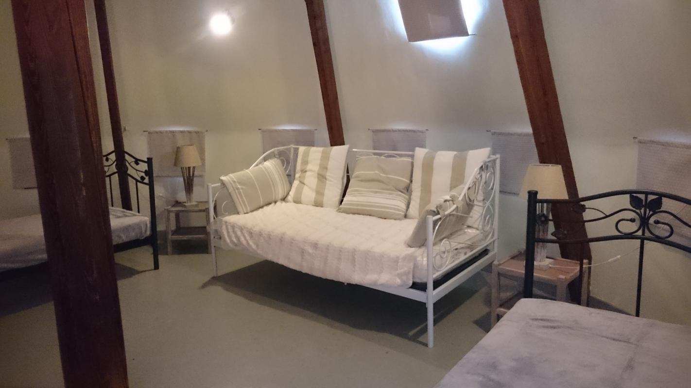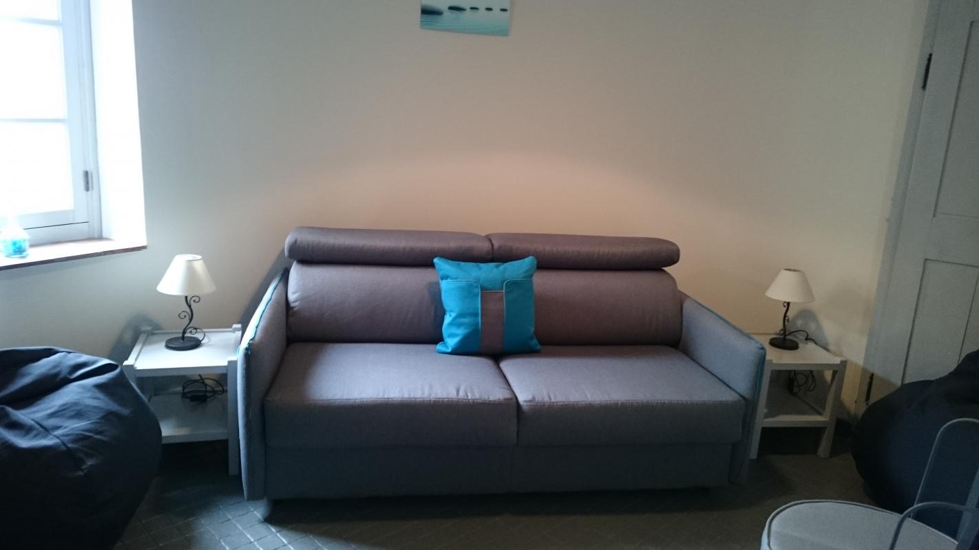 Tour datant du XIVe siècle, entièrement rénovée, s'étendant sur deux étages et offrant une superficie de 57 m², elle est située cœur du bourg. Le terrain clos privatif de 270 m² comprend un jardin attenant au gîte ainsi qu'un second jardin en contrebas, doté d'une cour et d'un espace de stationnement. Rez-de-chaussée : Pièce de vie : cuisine/salle à manger. Cheminée avec insert. 1 étage : 1 salon/chambre avec canapé-lit Modulo pour 2 personnes (140x190). Salle d'eau avec WC. 2ème étage : 1 chambre avec 3 lits 1 personne en 90X190 dont 1 en lit-banquette. Charges non comprises. Chauffage électrique, bois pour la cheminée et forfait ménage offerts. Lits faits à l'arrivée si location de draps.